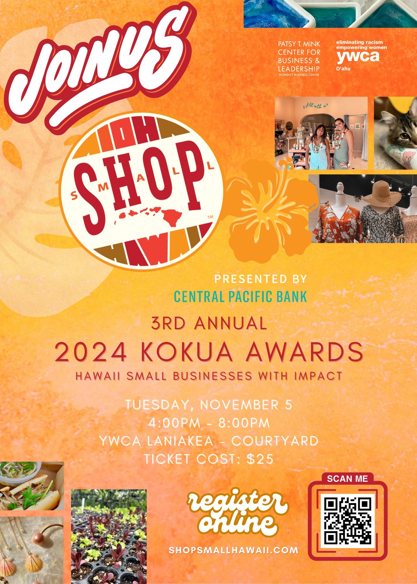 Join us as we celebrate Shop Small Hawaii's 3rd Annual Kokua Awards and recognize the achievements of the local small businesses in our community!