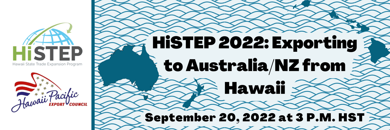 Australia and New Zealand (ANZ) are potentially interesting markets for Hawaii exporters as both countries have: direct flights to the islands, strong beach and surf cultures, and a growing appetite for natural and organic products. This webinar will feature US commercial service officers and businesspeople joining us from ANZ to discuss market trends and provide insights as to how to market your products to those markets.